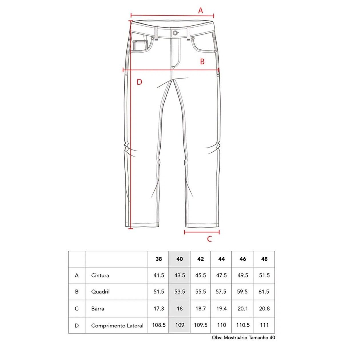 - Material: Algodão, Poliester e Elastano
