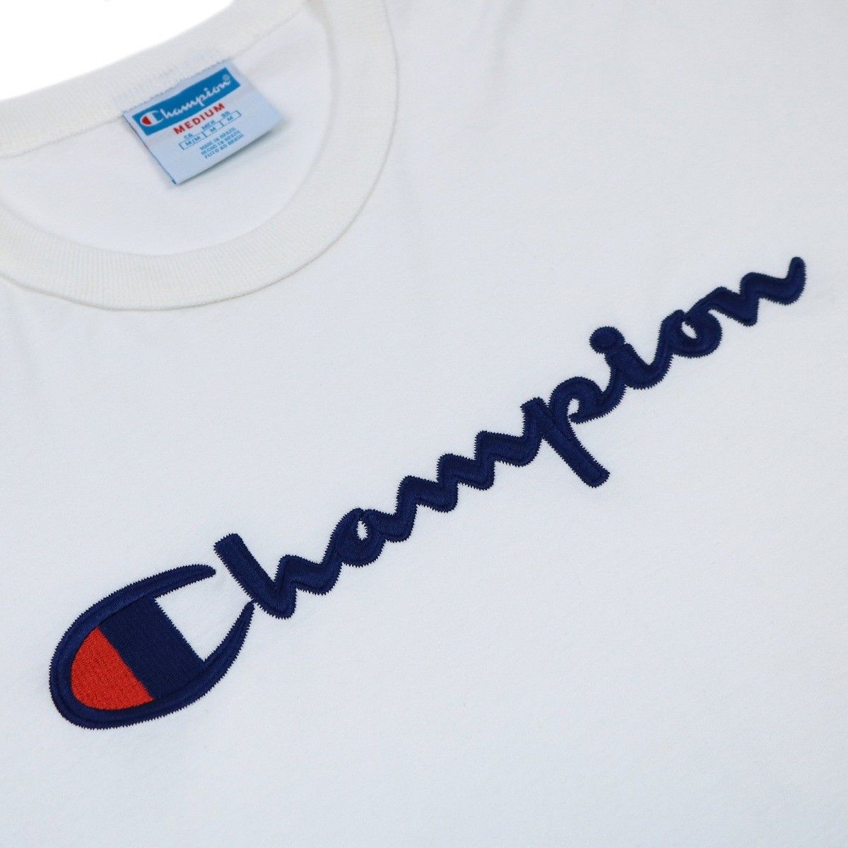 - Modelo: Camiseta Champion Especial/Script Patch Logo/ Bordado Off White