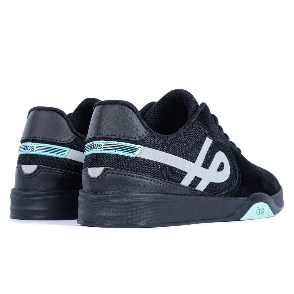 Sinta a diferença na lixa com o Tênis Öus Imigrante Preto Turquesa Refletivo Essencial . A Öus investiu em materiais resistentes e solado aderente para garantir que seu pé fique firme no shape.
