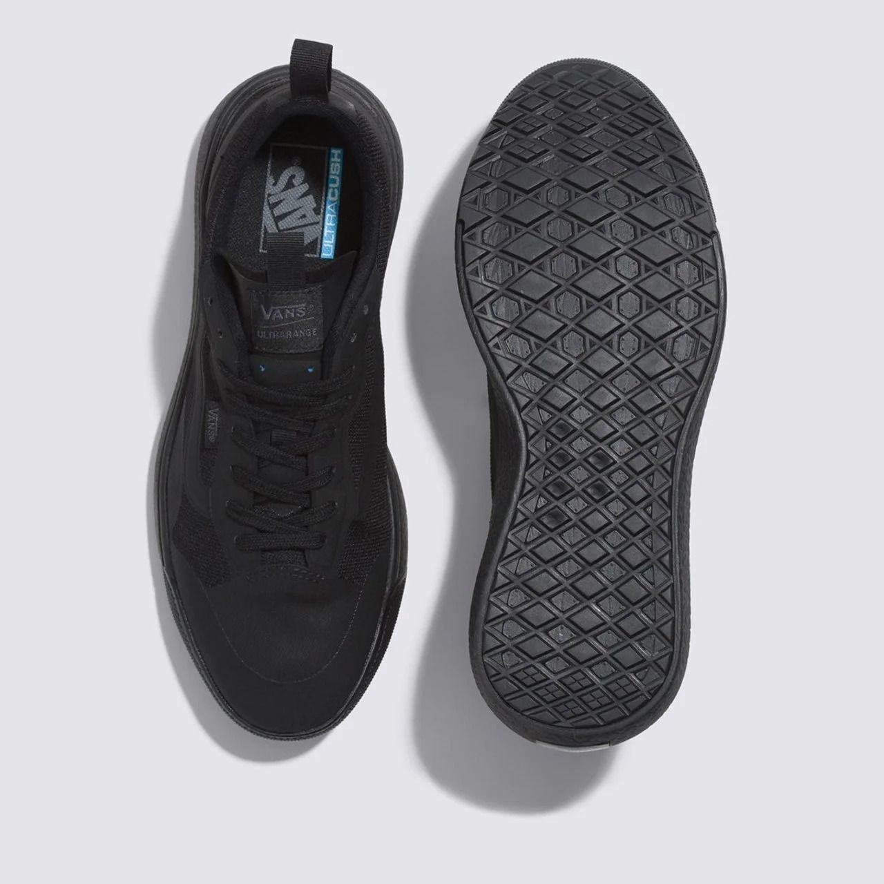 Evolua suas manobras com o Tênis Ultrarange Vans Exo Black Black Black. Desenvolvido pela Vans para suportar o impacto e oferecer controle total sobre o carrinho. Estilo e performance nos pés.
